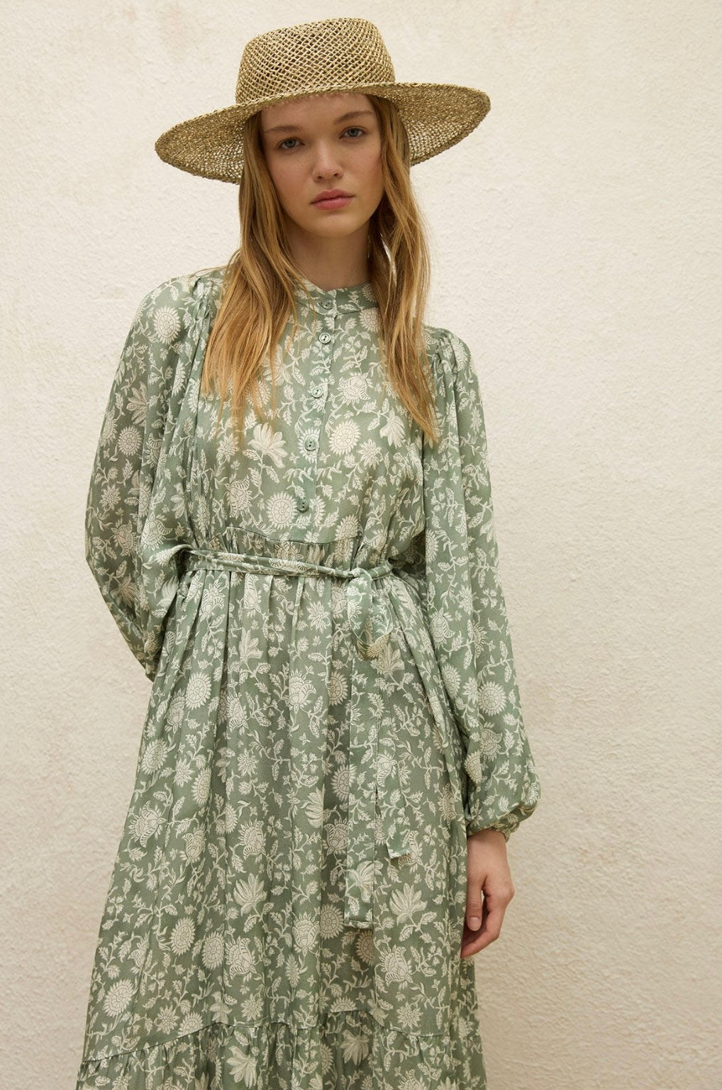 MANUKA - Ballonärmel Kleid Grün