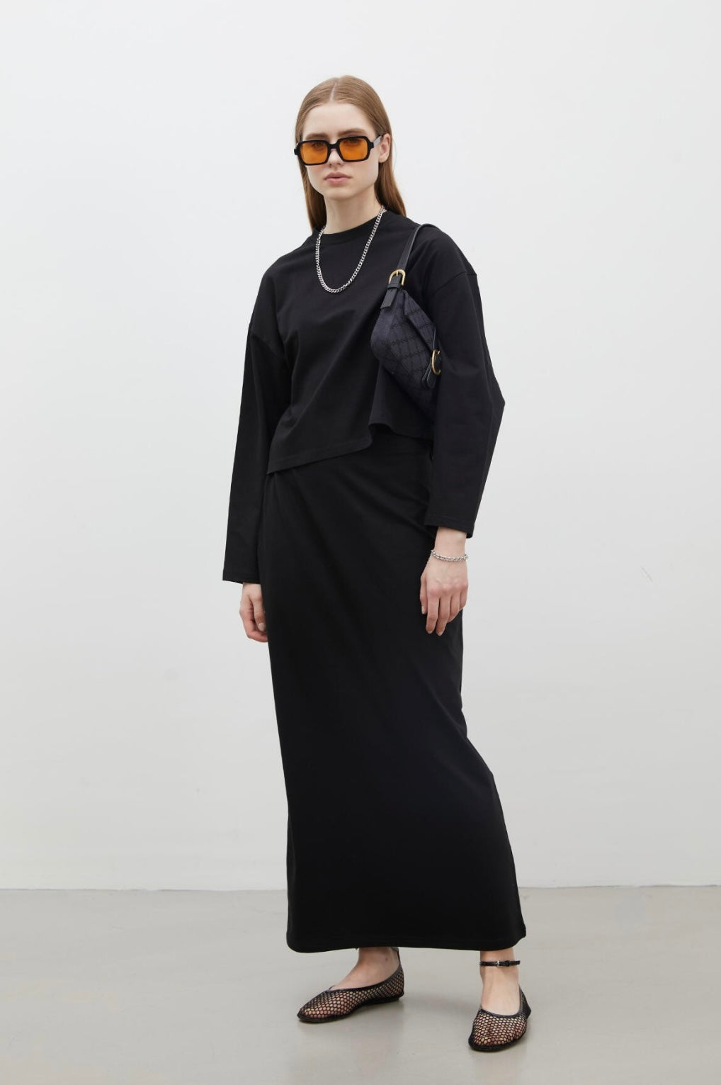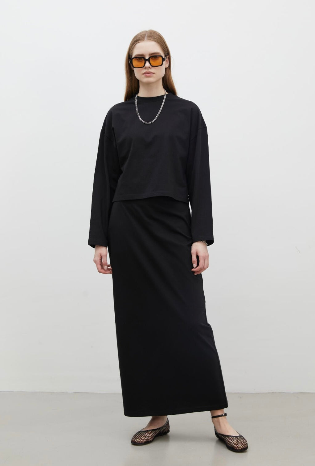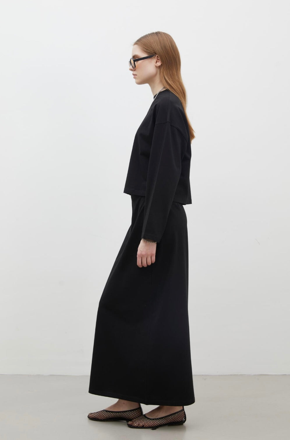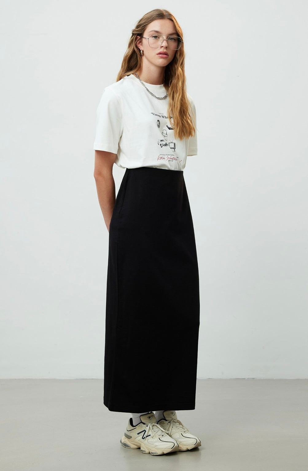 Hoch taillierter, figurbetonter Rock mit Gummibund und seitlichem, verdecktem Reißverschluss – aus weichem Baumwolljersey.