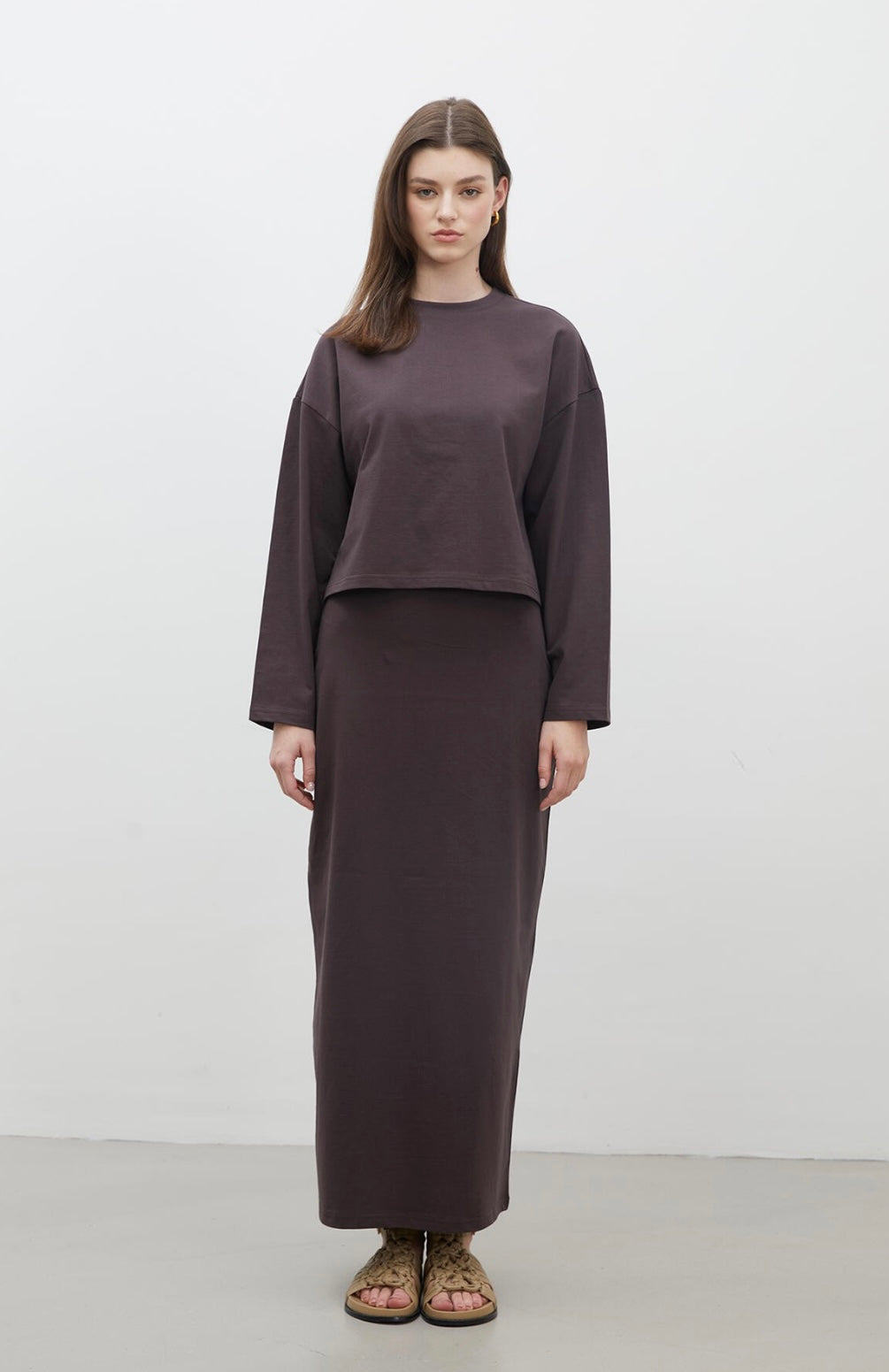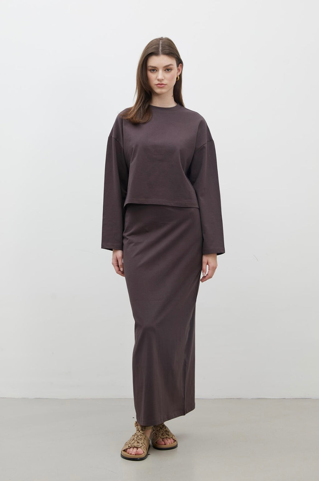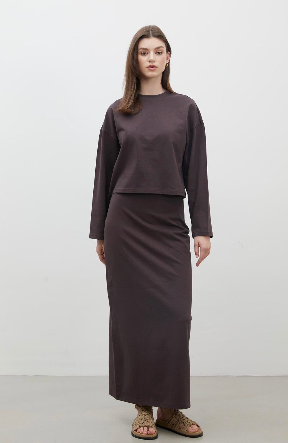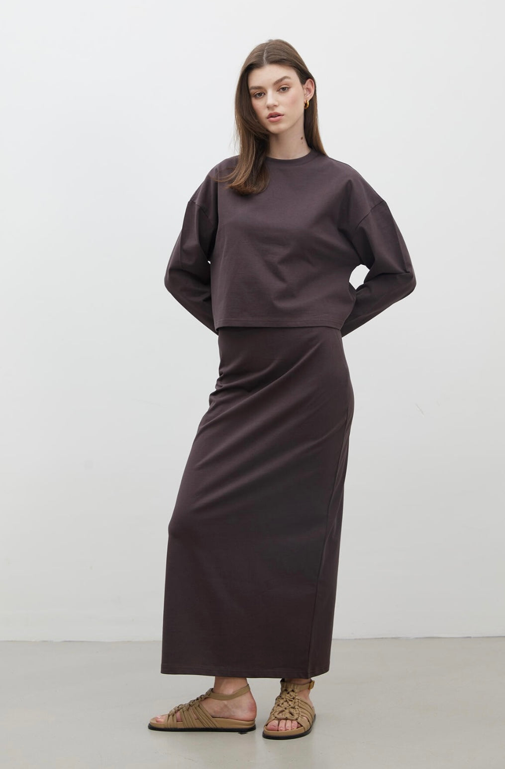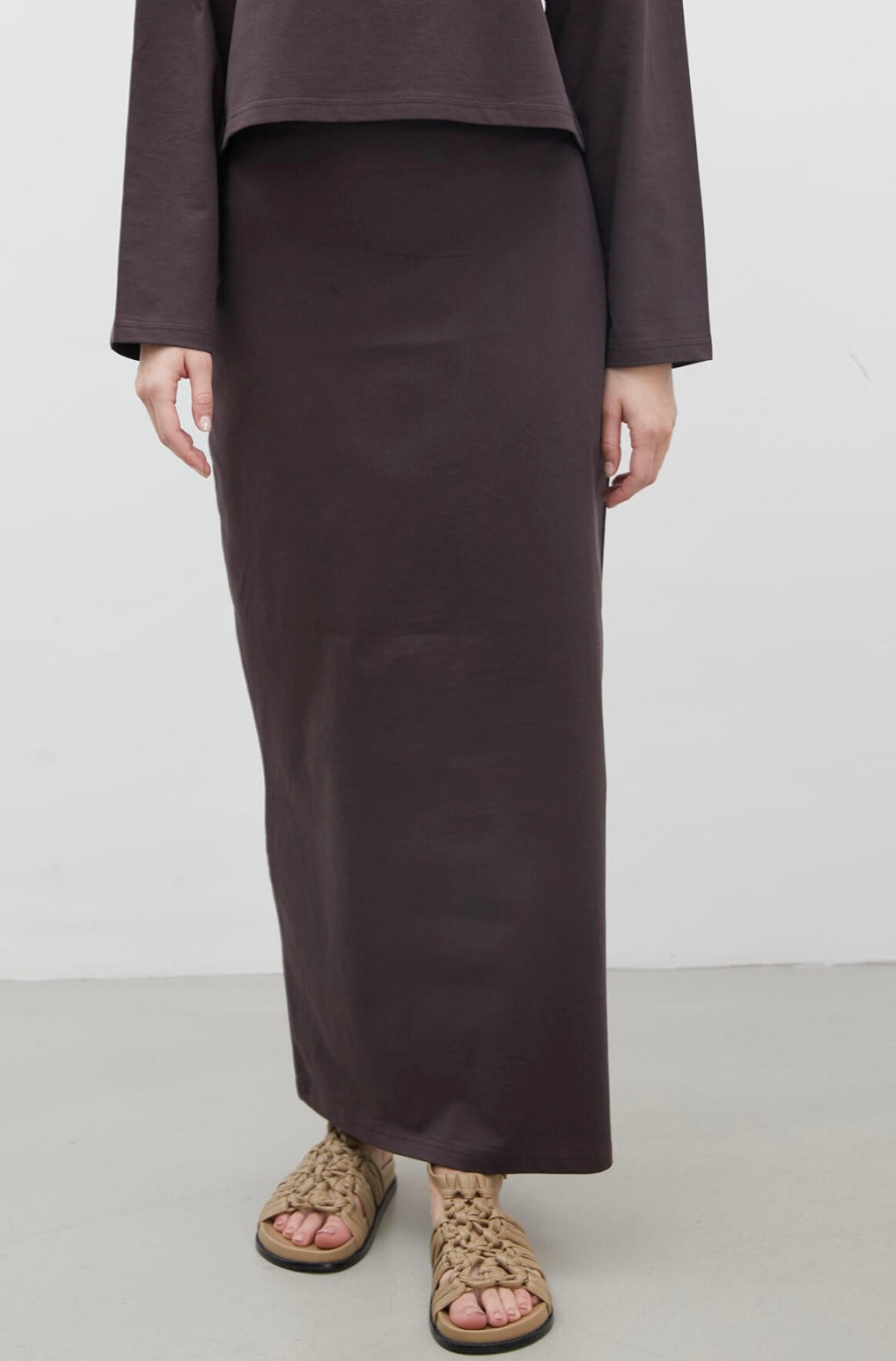 Hoch taillierter, figurbetonter Rock mit Gummibund und seitlichem, verdecktem Reißverschluss – aus weichem Baumwolljersey.