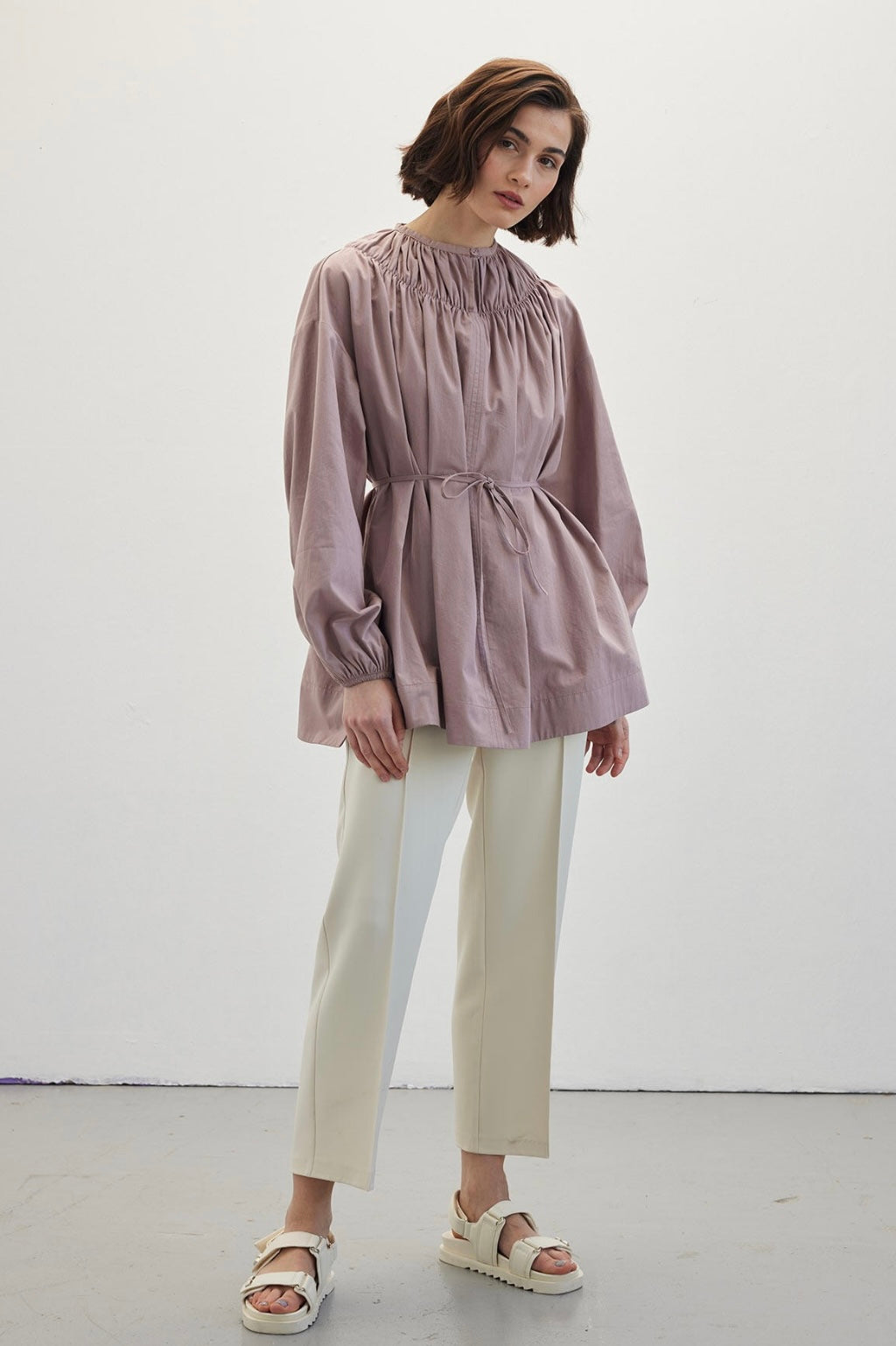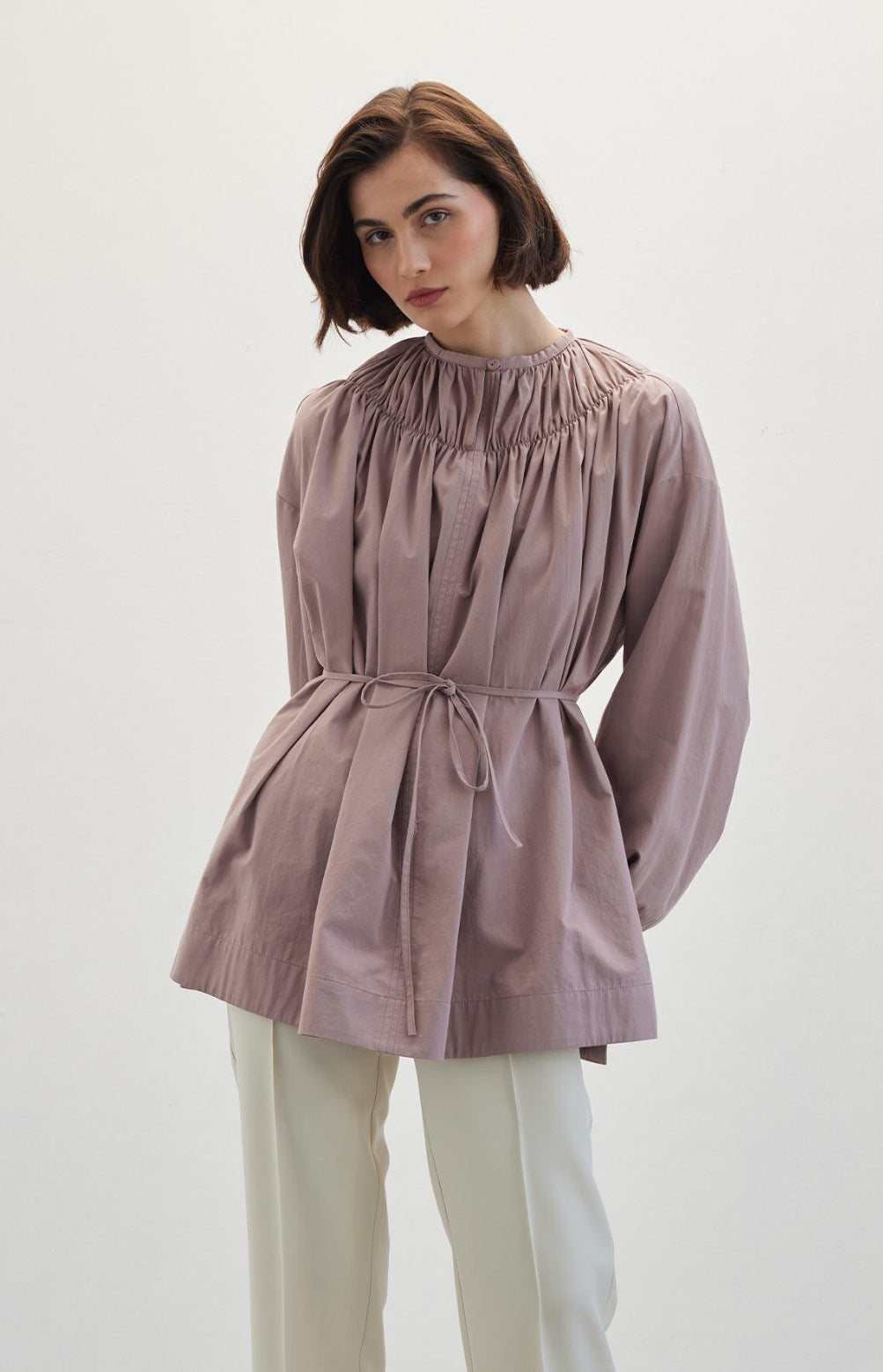 MANUKA - Bluse mit gerafftem Kragen Lila