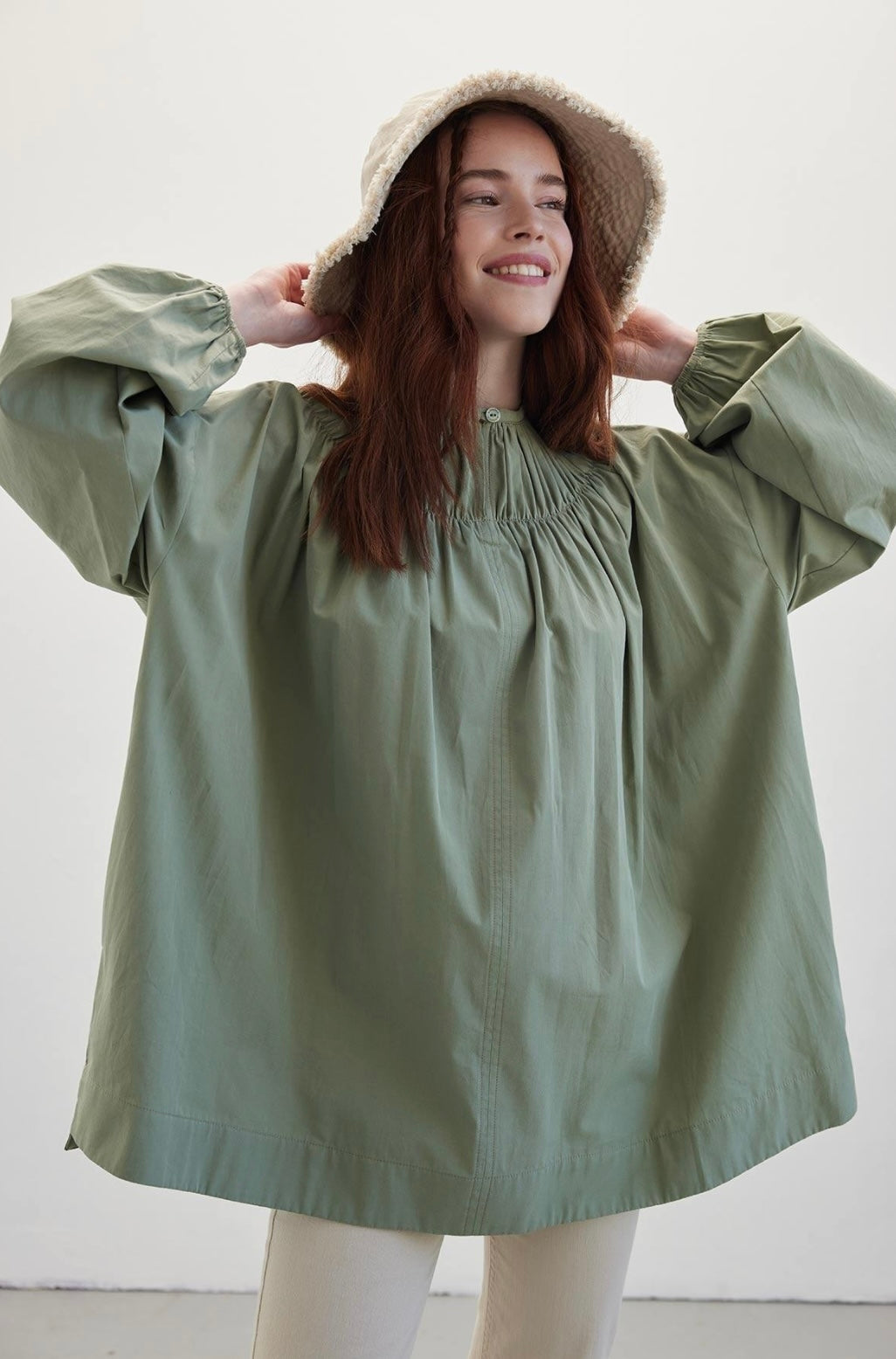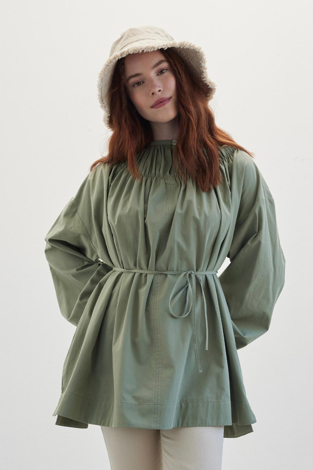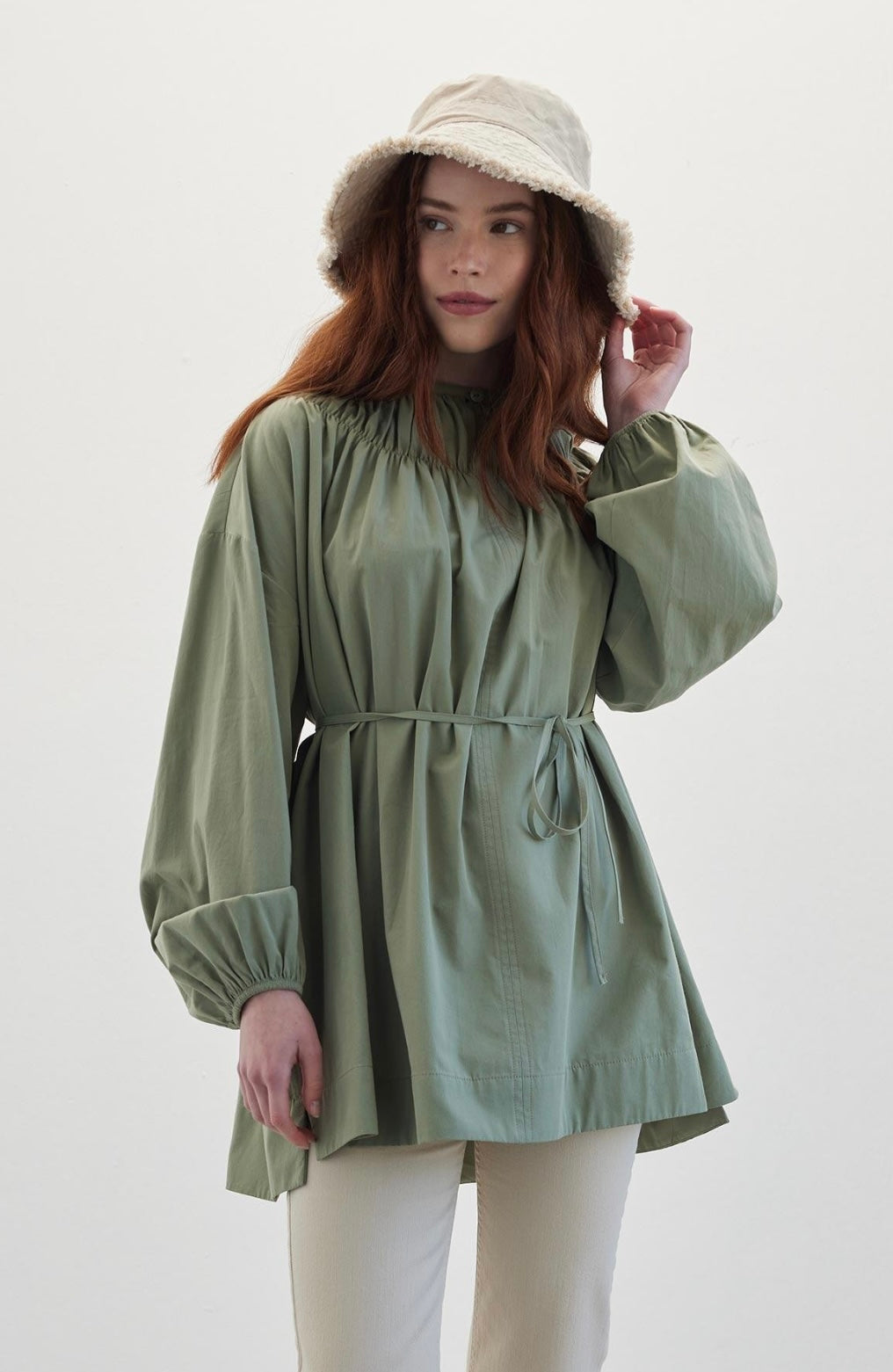 MANUKA - Bluse mit gerafftem Kragen Grün