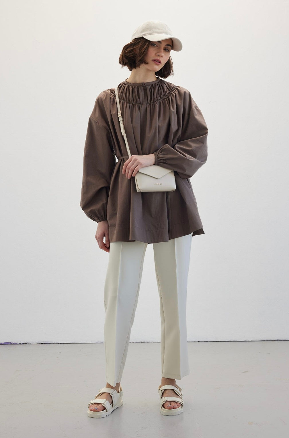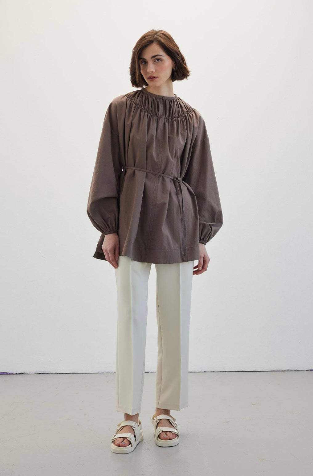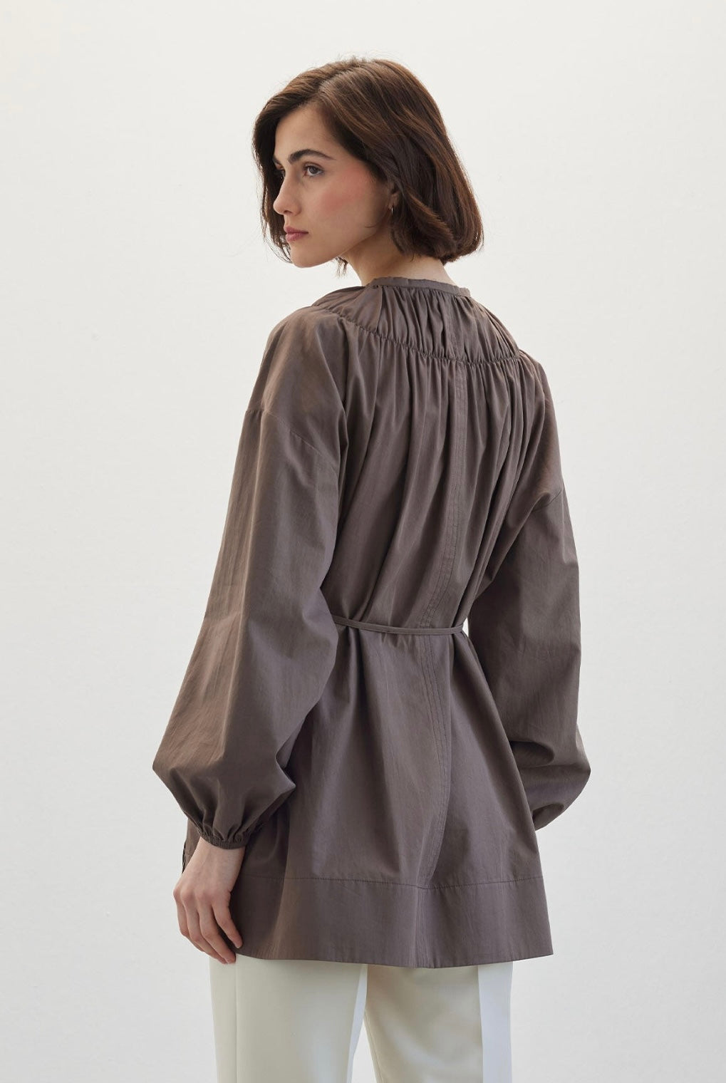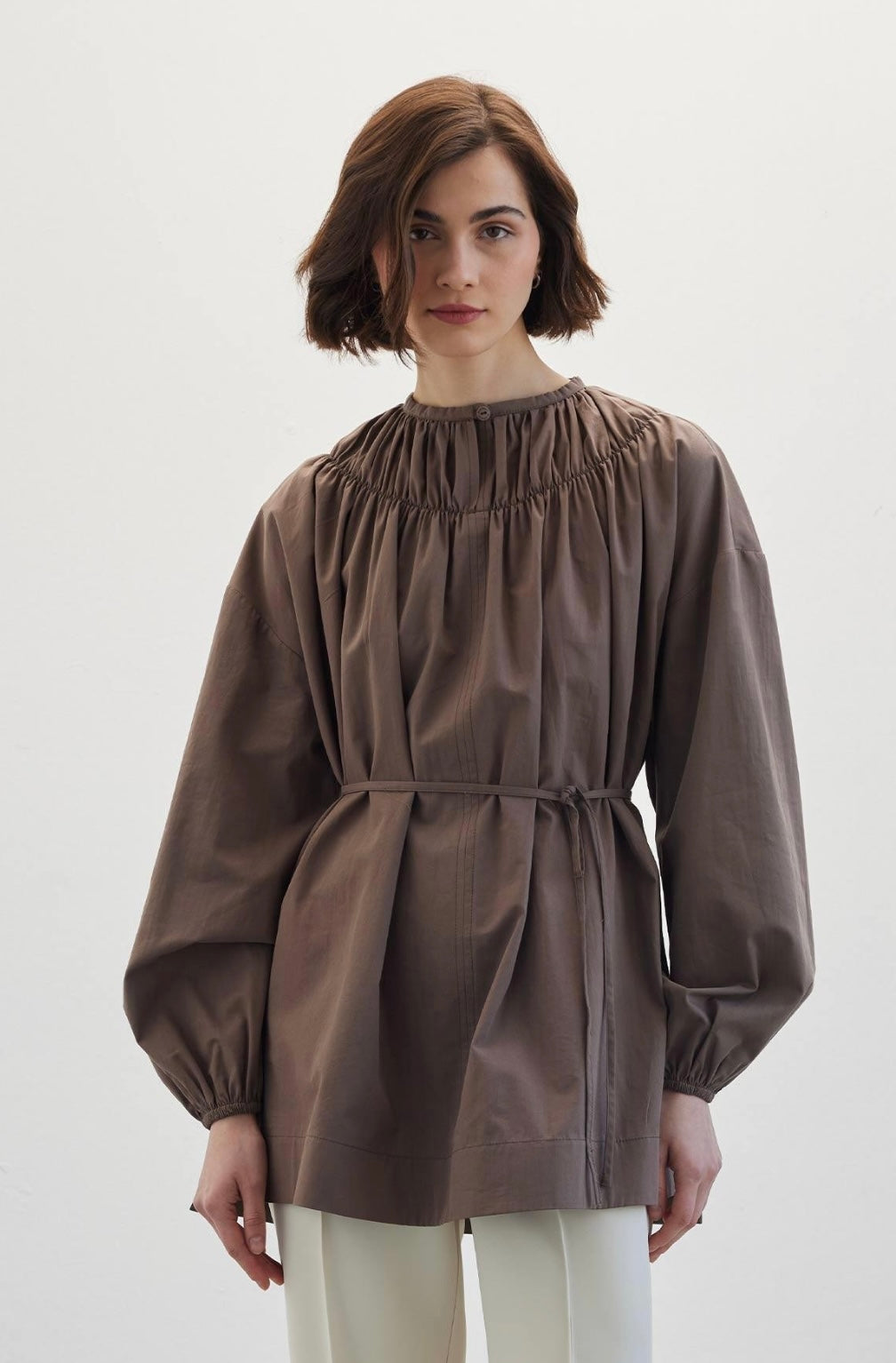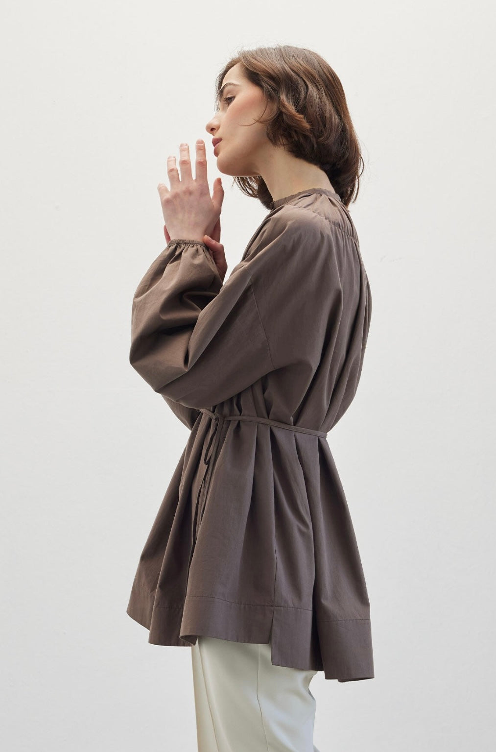 MANUKA - Bluse mit gerafftem Kragen Braun
