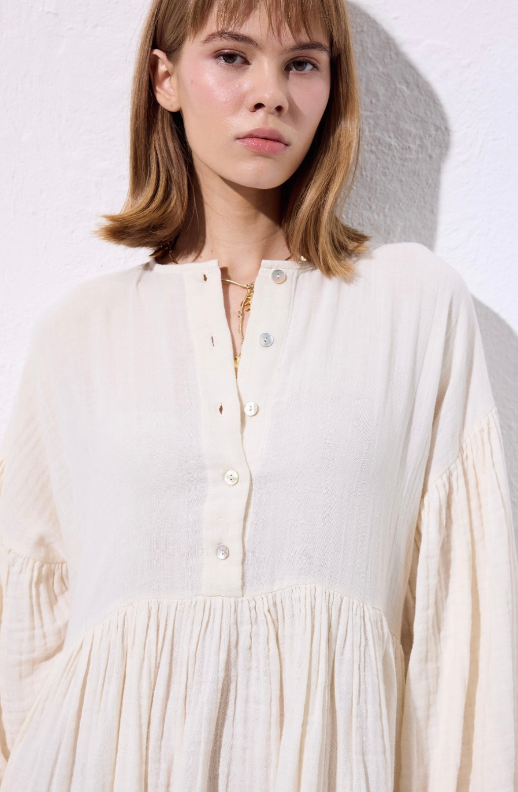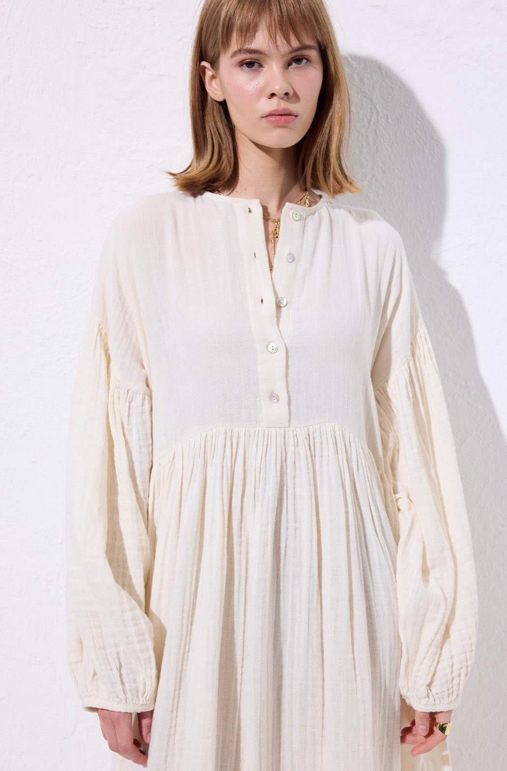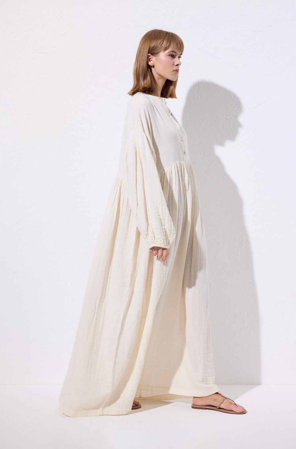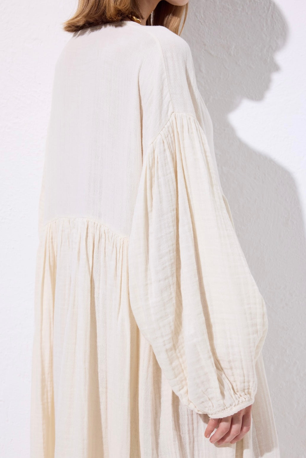 Locker geschnittenes Kleid mit Raffung in der Taille – perfekt für alle, die es luftig und bedeckt mögen. Dieses Kleid ist ein modest Must-have für den Sommer - stilvoll, bequem und vielseitig kombinierbar.
