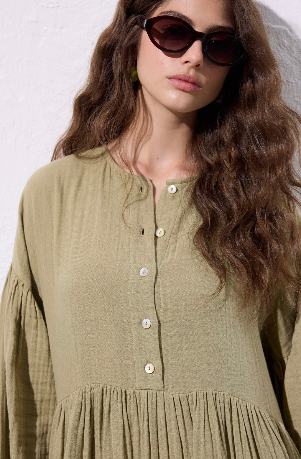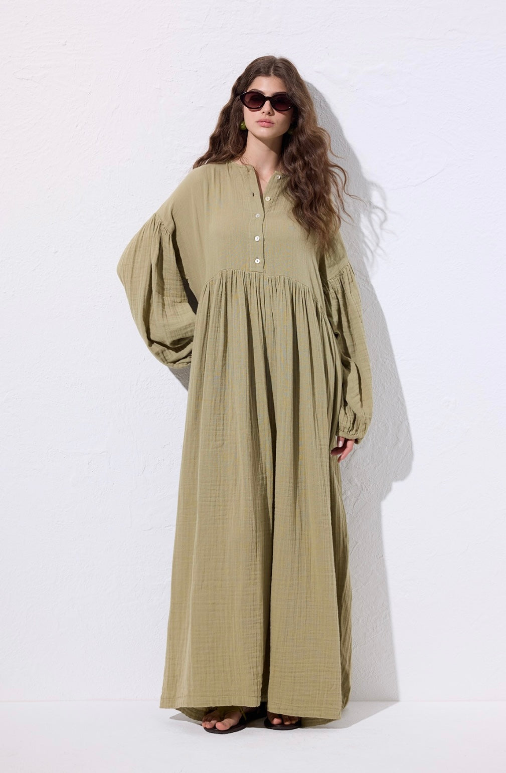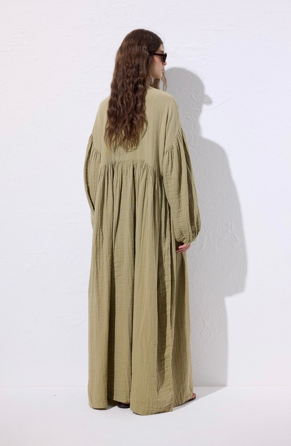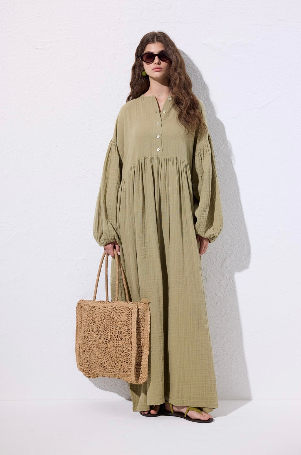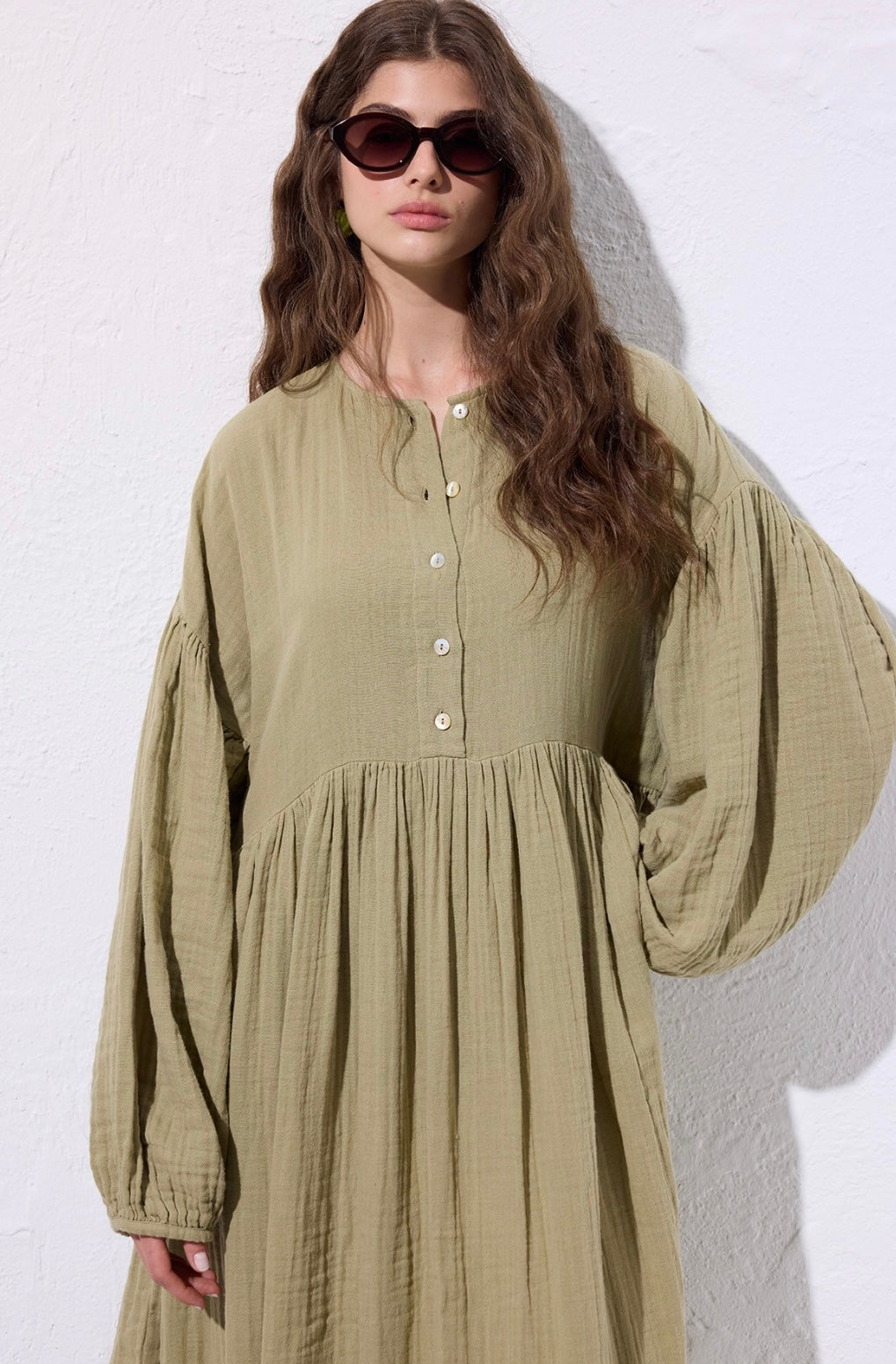 Locker geschnittenes Kleid mit Raffung in der Taille – perfekt für alle, die es luftig und bedeckt mögen. Dieses Kleid ist ein modest Must-have für den Sommer - stilvoll, bequem und vielseitig kombinierbar.