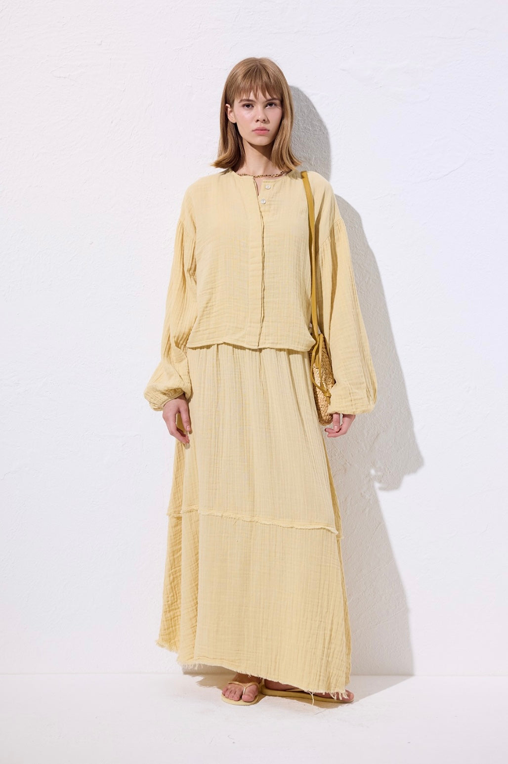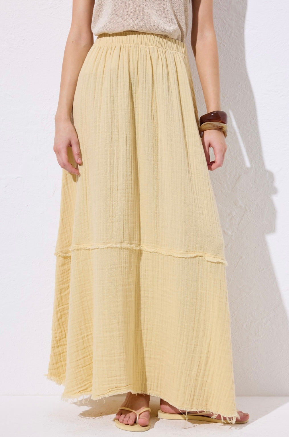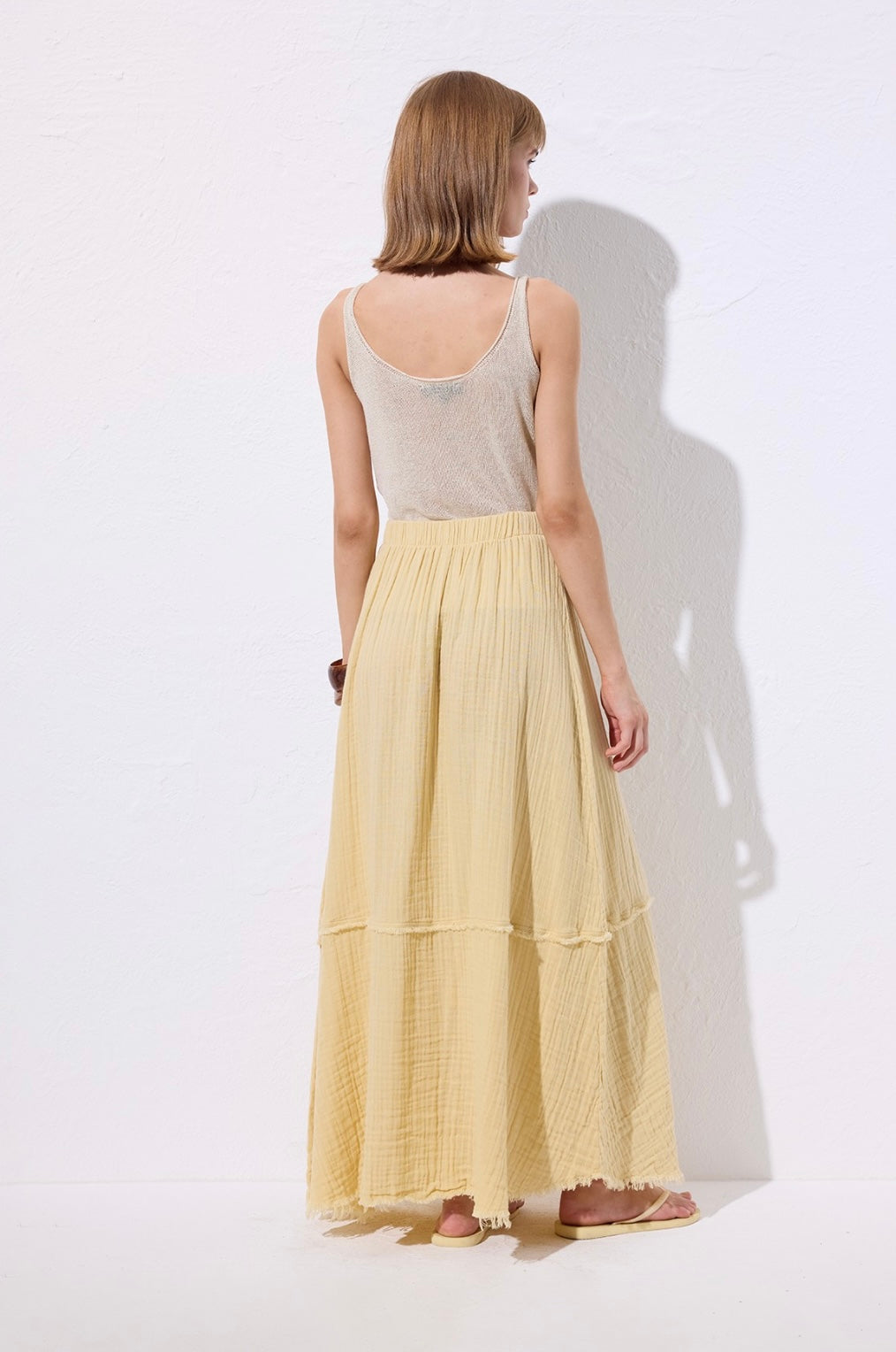 Luftig, weich und perfekt für den Sommer: Der Musselin Rock aus 100 % Baumwoll-Musselin bietet mit seinem elastischen Bund und der lockeren Passform idealen Tragekomfort – ob am Strand oder in der Stadt.