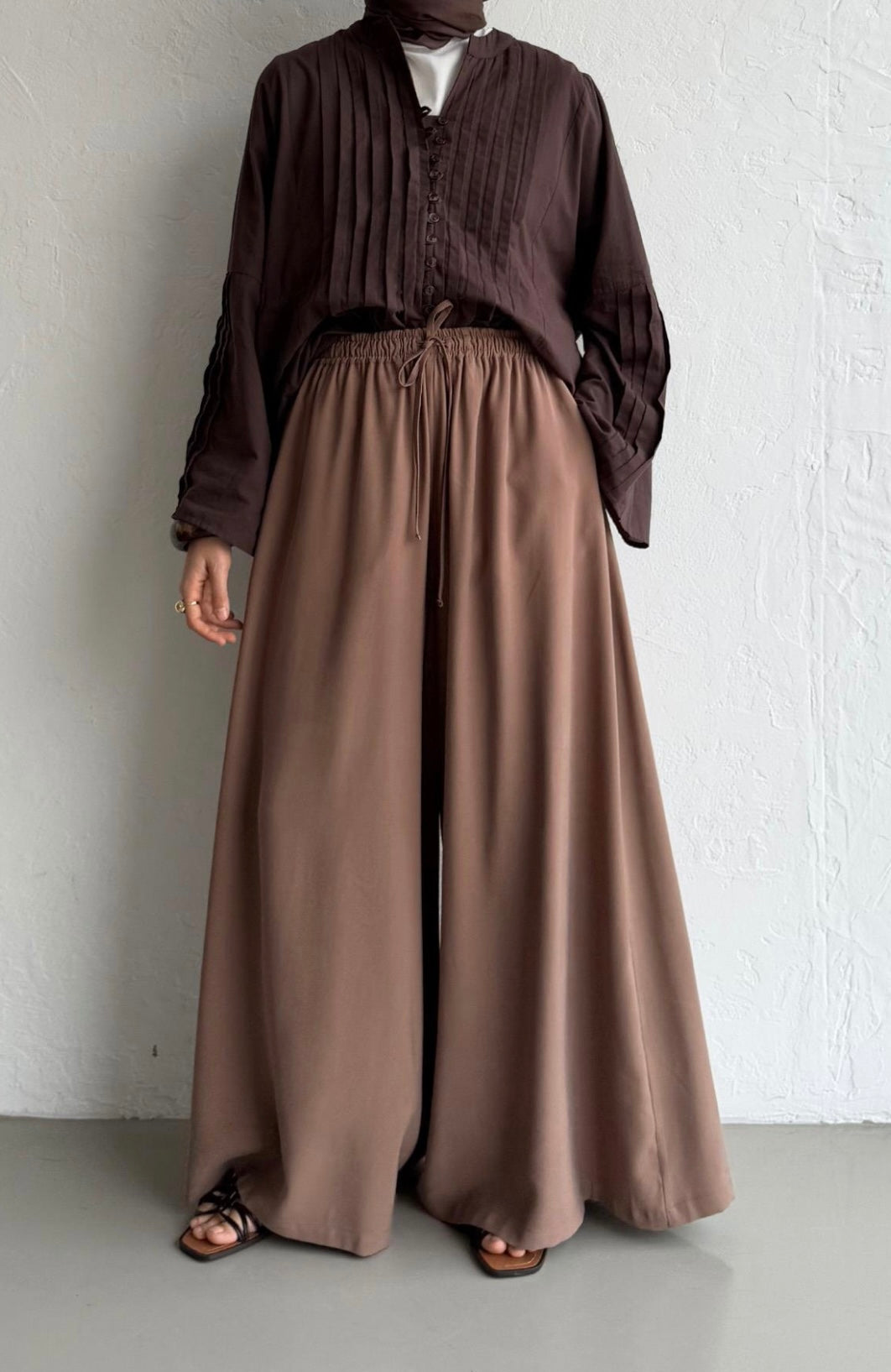Diese Palazzo-Hose überzeugt mit ihrer extraweiten Beinform, dem fließenden Schnitt, der bei jeder Bewegung Leichtigkeit verleiht und dem hohen elastischen Bund, der für bequemen Sitz und eine schöne Silhouette sorgt.